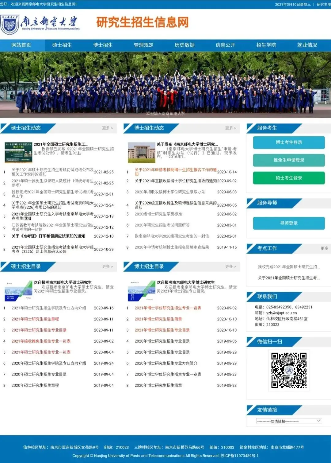 南京邮电大学关于招收研究生的所有通知都会放在这个网站上,像招生简章、报名、录取情况、调剂信息等都会在这个网站上通知。