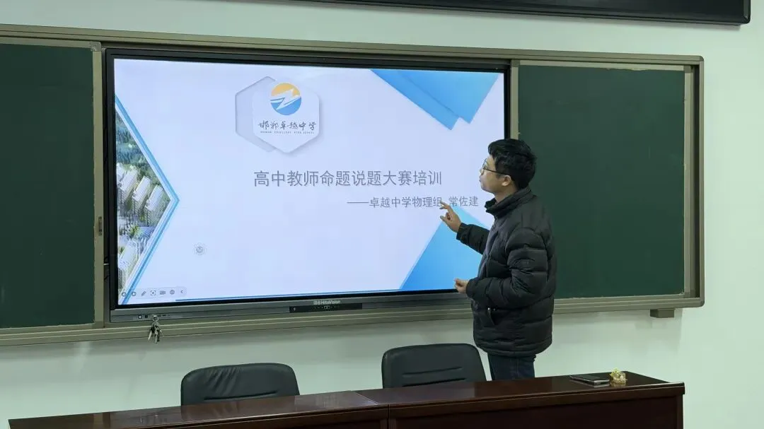 会议由常佐健老师主讲,参赛教师及教研组长参加。本次培训以“科学思维·情境创设·模型建构”为主线,聚焦高考命题走向与说题能力提升。