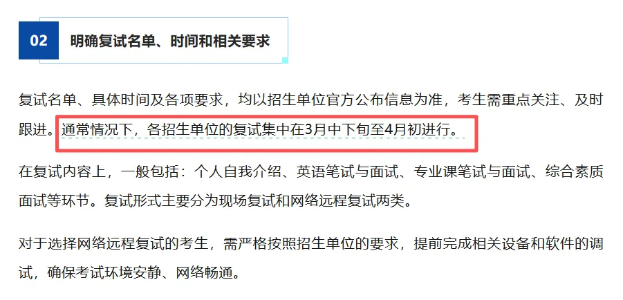 3月3日研招网发布了写给26考研同学的提醒文章:@2026研考生:国家线公布后,这些关键事项请务必关注,明确了复试调剂的相关要求和注意事项,明确各招生单位的复试集中在3月中下旬至4月初进行。