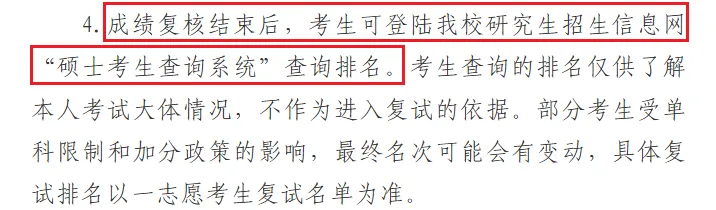 成绩复核结束后,考生可登陆我校研究生招生信息网“硕士考生查询系统”查询排名。