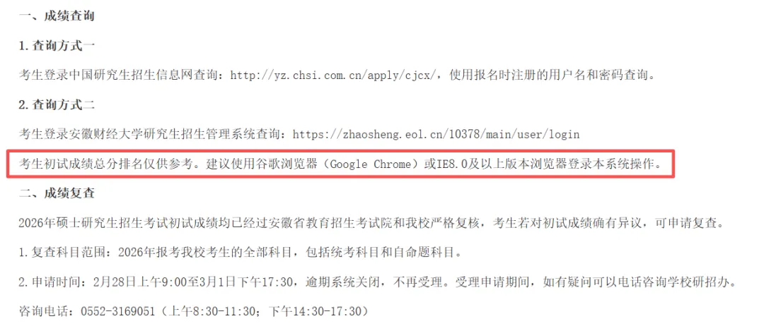 考生可在3月2日后,登录“长沙理工大学研究生招生信息管理系统”(网址:https://yjszs.csust.edu.cn/ksxt/login.aspx)查询。