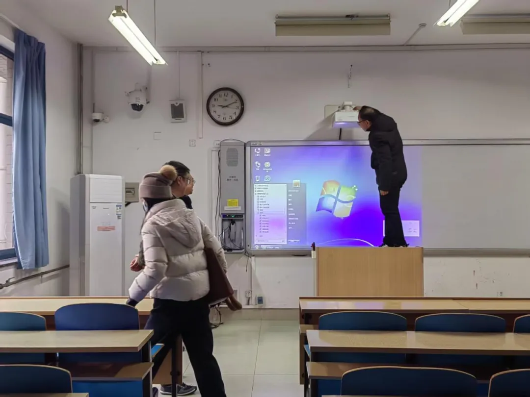 本次专项检查覆盖全校所有教室,重点围绕三大核心教学保障条件展开:一是教室环境检查,确保教学空间整洁舒适、符合教学使用标准;二是多媒体教学设备调试,对投影仪、电子屏、中控系统等教学设备逐一测试检修,保障设备操作顺畅、功能完好;三是校园网络保障,对教学区域网络线路、信号覆盖、网络连接进行专项检测,确保线上线下教学网络畅通无阻。