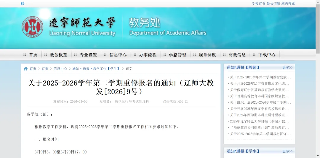 2.根据《辽宁师范大学本科生学籍管理办法》(辽师大校发〔2024〕62号)的规定,学生对首次修读考核合格的课程成绩不满意,只允许重修一次;首次修读考核不合格,重修后考核仍不合格的,应当再次重修,在最长学习年限内重修次数不限。同一门课程每次考核成绩均在成绩单中记载,均计入平均学分绩点。