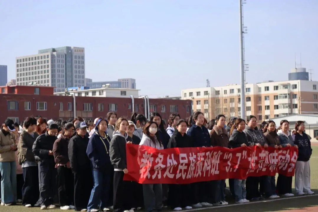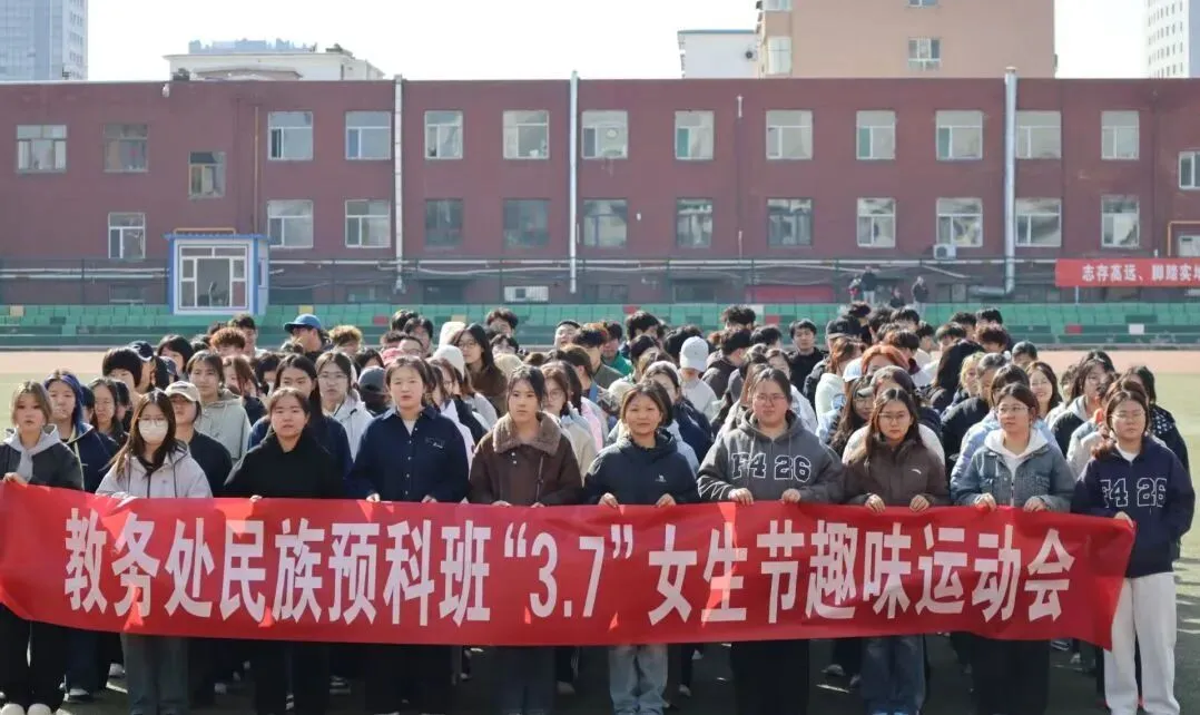 春风送暖,芳华绽放。在第116个三八国际妇女节来临之际,我们迎来了充满青春气息的3·7女生节。为展现同学们自信自强、昂扬向上的精神风貌,增强班级凝聚力与团队协作意识,丰富同学们的课余生活、缓解学习压力,教务处民族预科班于2026年3月7日下午14点在赛罕校区西院操场举办“巾帼绽芳华,运动乐开花” “3.7”女生节趣味运动会,班主任敖著名老师,辅导员李海霞老师,学工助理和2025级全体学生参加。