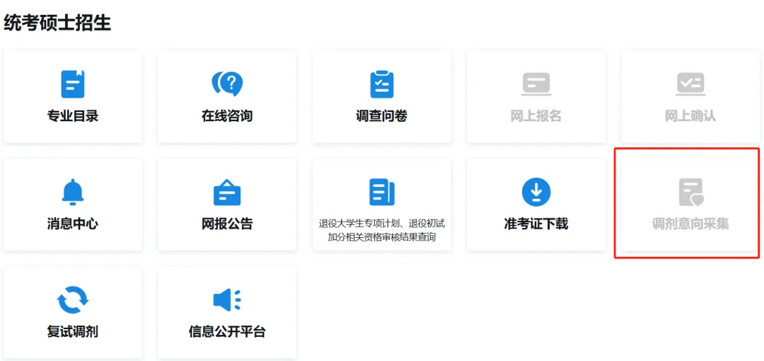 ①查询余额:考生可在调剂服务系统开通前,了解招生单位发布的调剂缺额情况。②一键转入:考生可在调剂服务系统开通之后24小时内,在满足条件的前提下,将调剂意向一键转为调剂志愿。(需要注意,在满足条件的前提下再转入,不要浪费志愿)③沟通保障:考生和招生单位可就调剂意向提前预选、双向沟通。④范围更广:考生适用的范围比调剂服务系统更广,最多可填写10条调剂意向。在个人中心可以看到“调剂意向采集”入口(暂时还未开放),如下图红色方框所示。