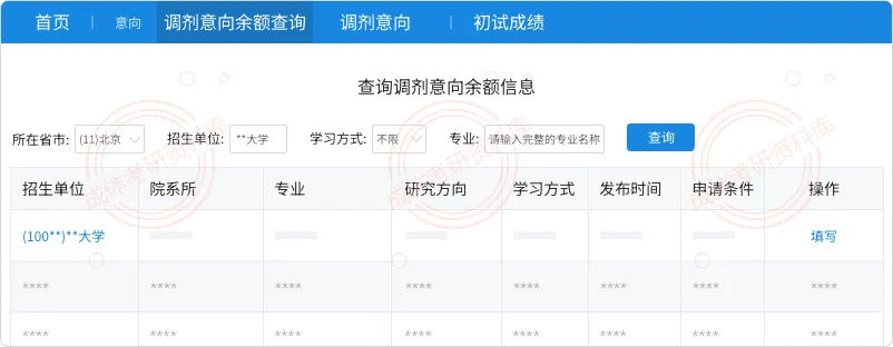 考生可在调剂服务系统开通前,了解招生单位发布的调剂意向余额情况。
