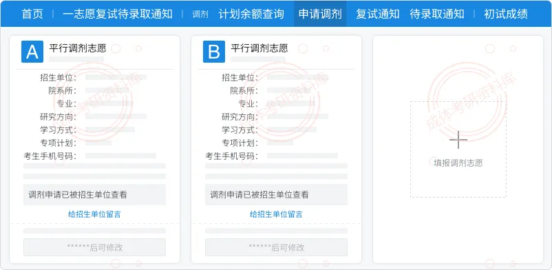 调剂意向不可取消或更改。调剂志愿在招生单位设置的解锁时间内(不超过36小时)不可取消或更改。