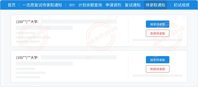 考生接到招生单位发出的待录取通知后,须在招生单位规定时间内登录调剂系统进行确认,否则招生单位可取消待录取通知。