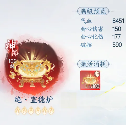 4、焚香「焚天天书-玄阳衍」效果调整为降低敌人全攻击和全防御,持续5秒。对首领敌人无效。