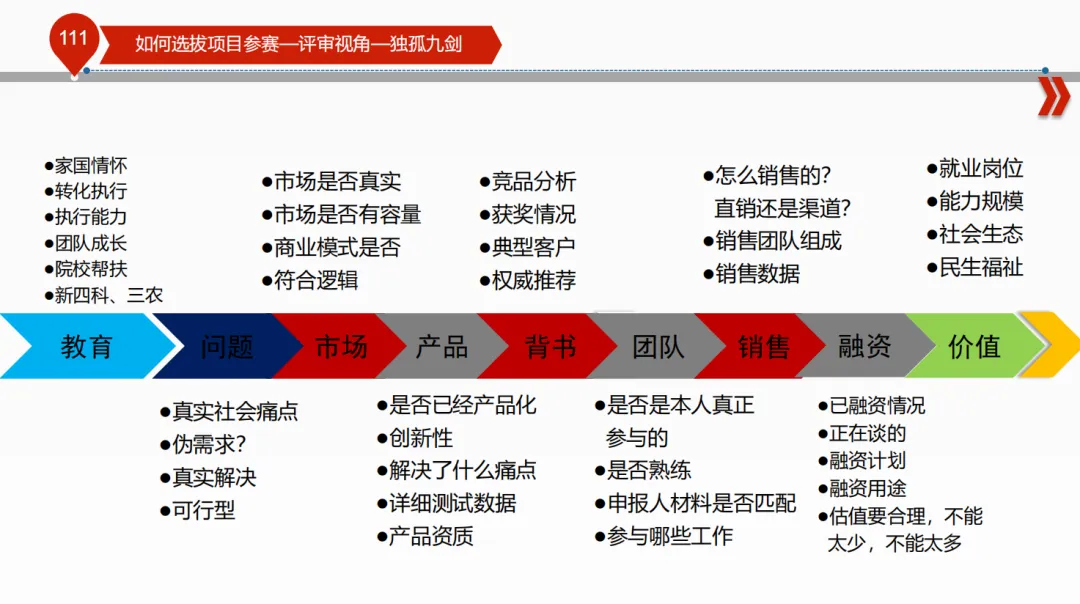 团队情况,主要考察团队成员的创新精神和创新意识;项目团队成员的教育背景、基本素质、价值观念、知识结构、擅长领域;团队构成和分工协作合理。