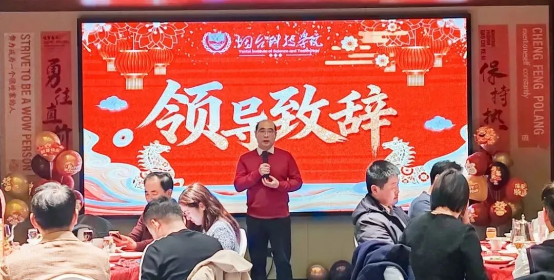 胡剑锋讲道,2025年是学校发展过程中非常重要的一年,教学工作在过去一年扎实推进、成果丰硕,为学校高质量发展镌刻下浓墨重彩的一笔。其次,他指出新的一年要以本科教学合格评估为核心抓手,高效统筹教学资源,持续优化教学服务与保障体系,为教师和学生打造良好的教学和学习平台,规范教学管理,提升教学管理水平,培养更多教学成果。最后,他表达了对各位同仁的美好祝愿,勉励大家坚守拼搏奋进精神,在烟科广阔平台施展才干、携手共进,共绘学校发展辉煌新蓝图!