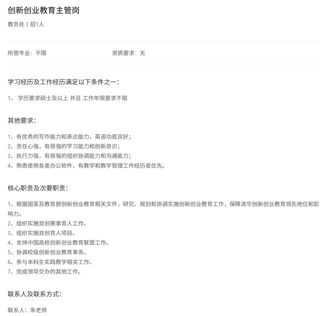 >清华大学教务处招聘管理岗1人,3.26截止
