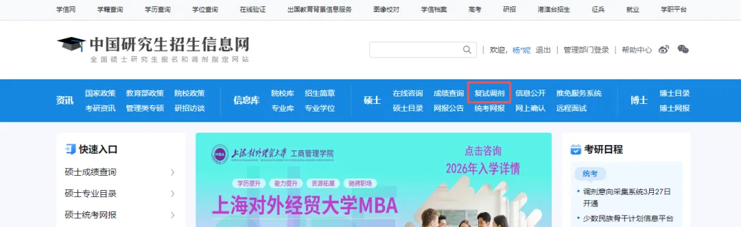 3月27日起,使用考研报名时的账号密码登录研招网调剂系统,进入「调剂意向采集系统」。