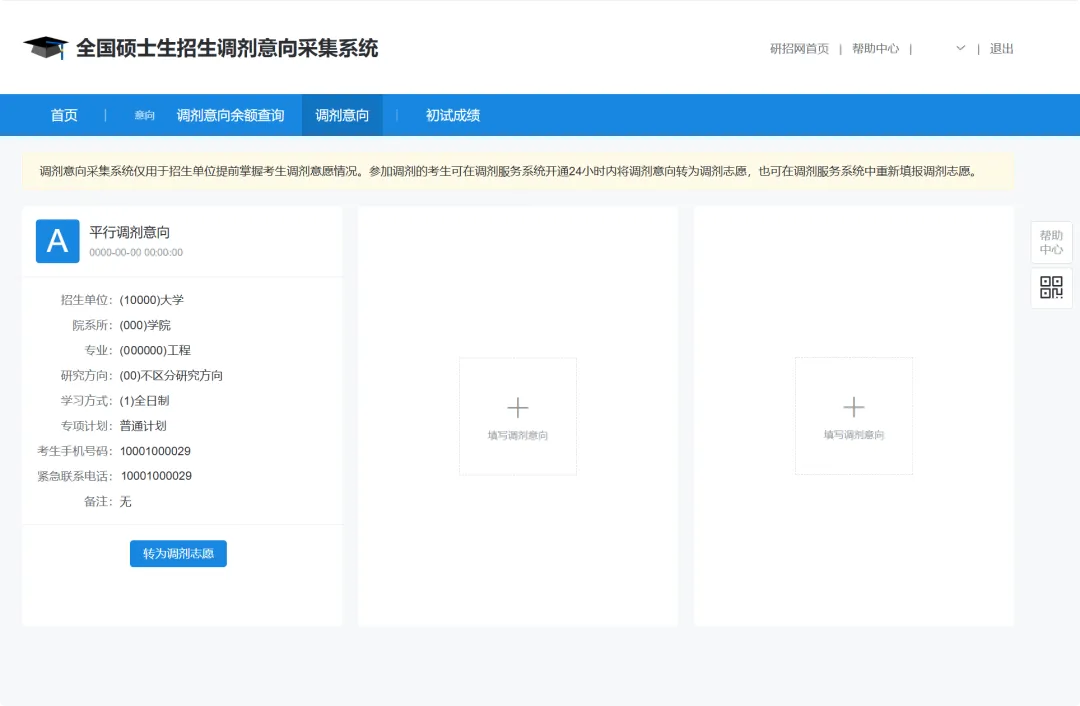 2.调剂服务系统开通后,调剂意向采集系统的查询调剂意向余额信息和填写调剂意向功能将关闭。