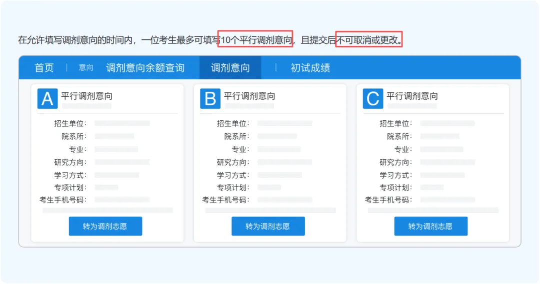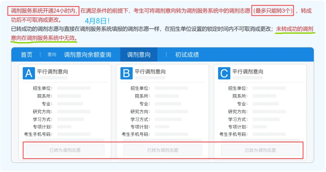 补充:若部分意向不符合正式调剂要求,可放弃转化,直接在正式系统中填报新的志愿。