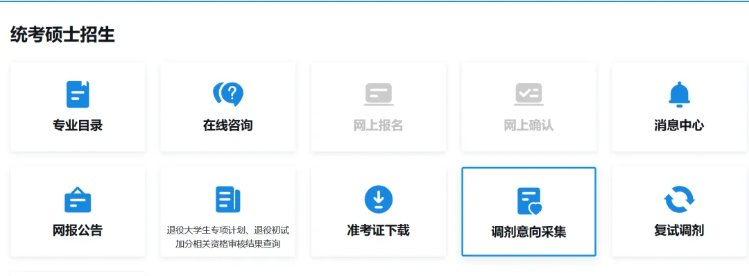 1. 登录研招网,找到并点击调剂意向采集板块,进入专属系统