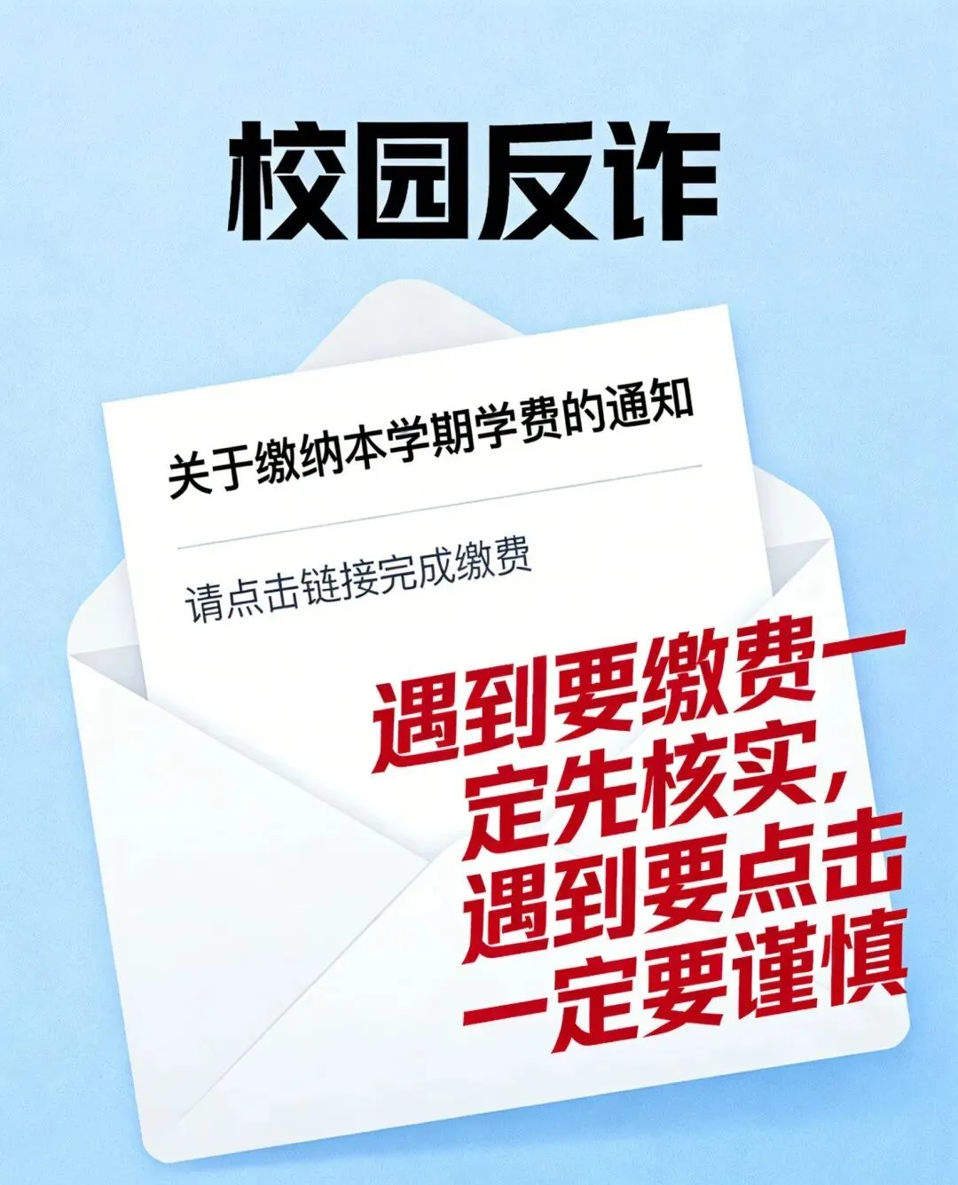 校园反诈无小事,提高警惕是关键。请同学们擦亮双眼,认准官方通知渠道,摒弃侥幸心理,不贪小便宜、不信陌生话术、不点可疑链接、不透露个人信息。