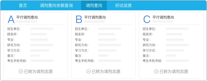 区别2:意向采集系统中最多可提交10个平行调剂意向。调剂服务系统最多可提交3个调剂志愿。将3个调剂意向转化为调剂志愿。