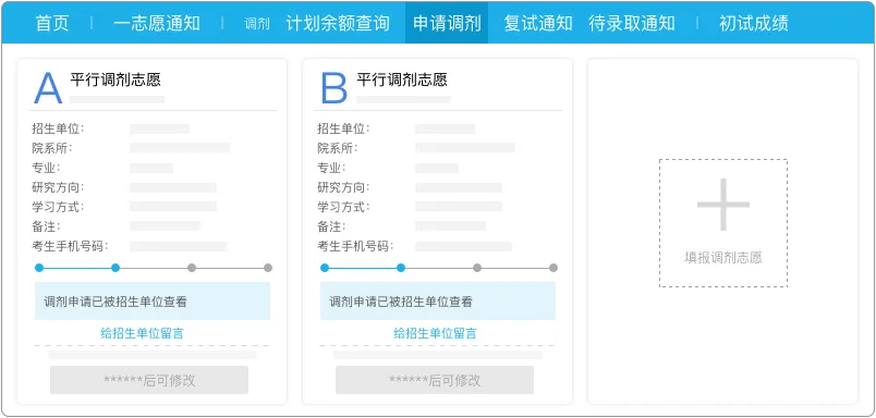 2.可填写10个平行调剂意向,提交后不可取消或更改。所以没想好的别着急填。