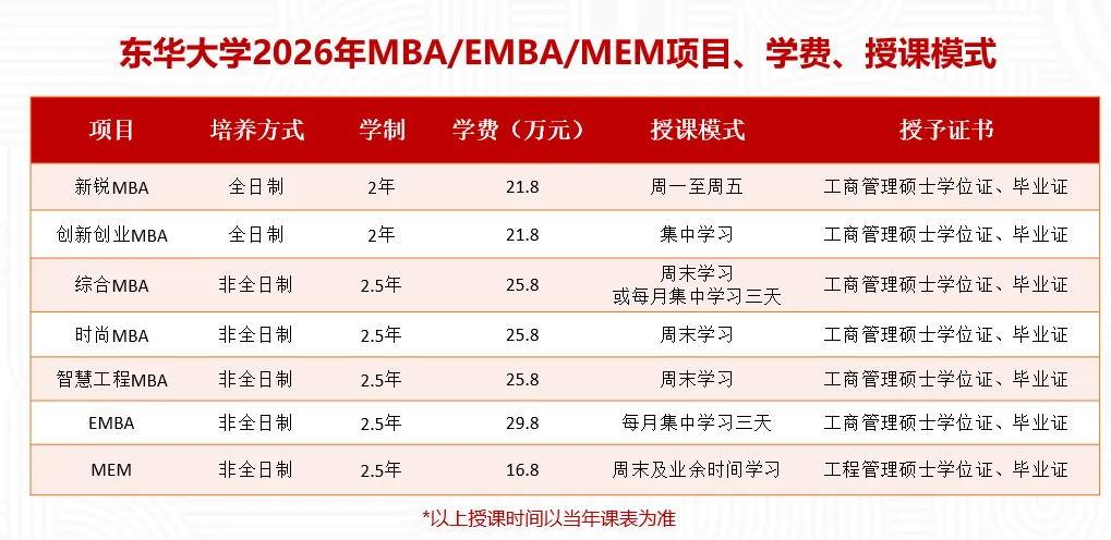 2.东华大学非全日制MEM学费16.8万元,每周末学习。