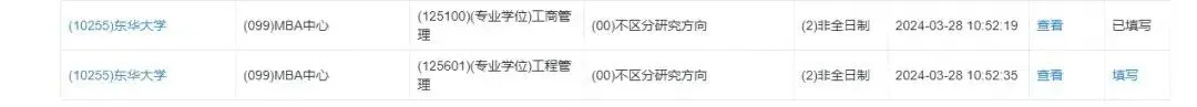 希望调剂到东华大学非全日制MEM的考生请在调剂系统选择:“东华大学(10255)、MBA教育中心(099)、工程管理(125601)、非全日制、不区分研究方向”。