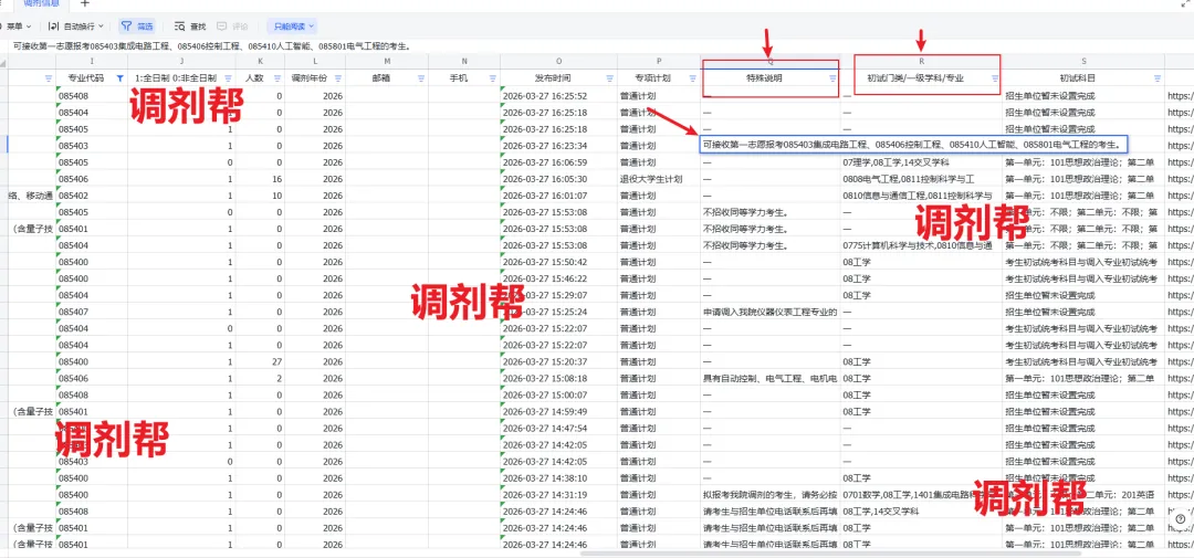 尤其是等到正式调剂系统开放后,成千上万条调剂信息,有了这个表格,就能快速筛选出有效信息,再配合往年的录取分数,就能锁定目标院校,太好用了!