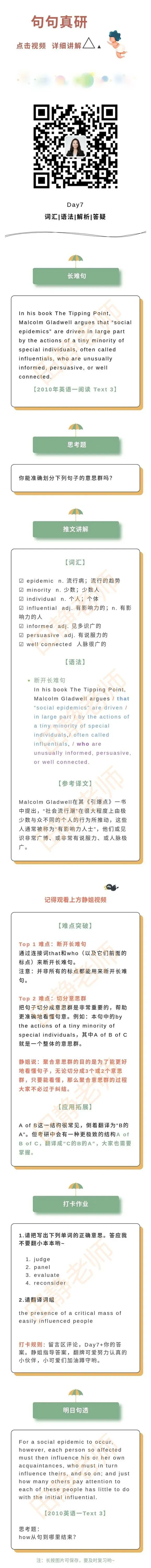 也可以跟公众号长难句每日一句的视频讲解,静姐带学带练意思群划分,进步妥妥的!