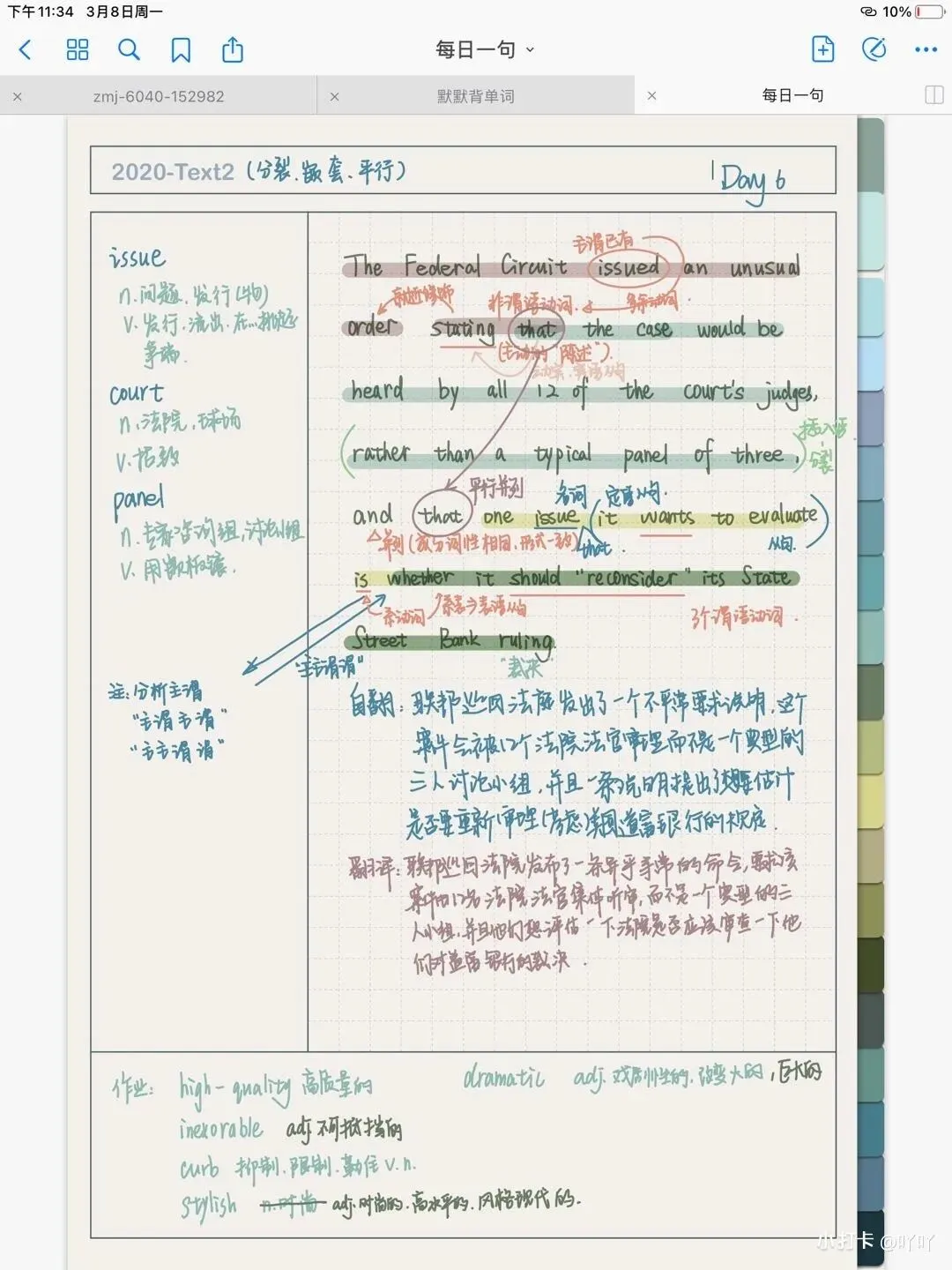 建议大家词汇和长难句同步学习