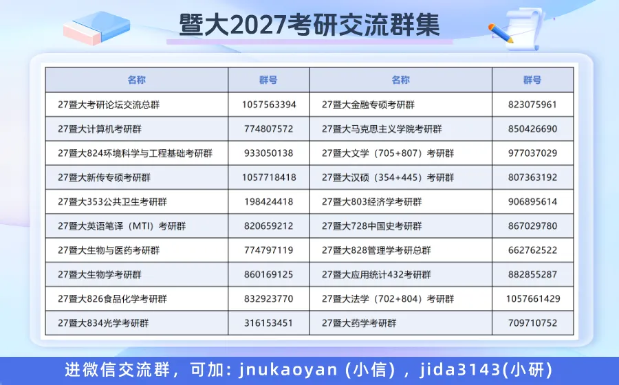 2026考研调剂意向采集系统已开启,想要调剂的小伙伴可以开始填写了!如需了解暨大调剂专业复试情况,可添加文末微信咨询!