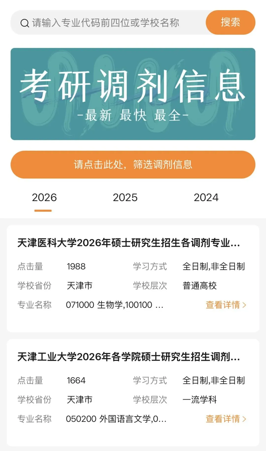 我们的小程序,仍在持续更新2026考研调剂信息。